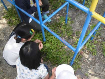 たんぽぽにはいろいろなちえがあることを知り、子どもたち