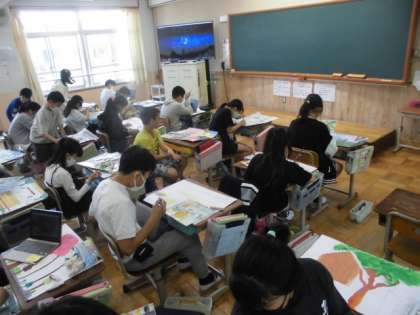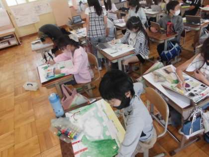 校内の自分にとって大切な風景を描いています。