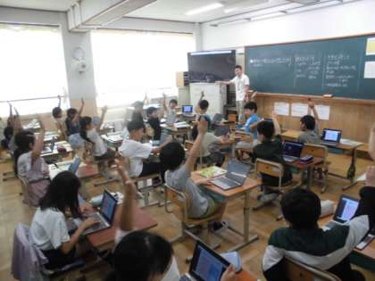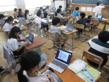 入力したことをクラウド上で交流し、考えを深めていました。