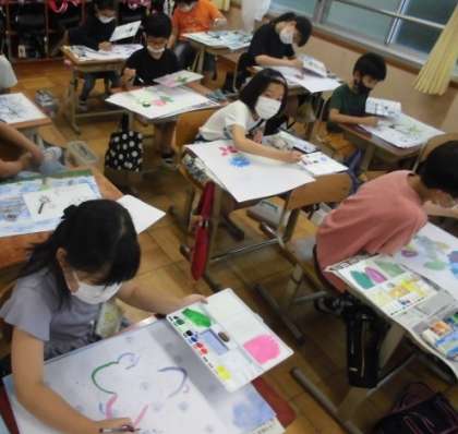 図画工作で、まぼろしの花をテーマに