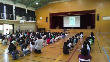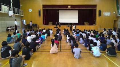 まだまだ暑い中での児童朝会でしたが、子どもたちは最後まで一生懸命に話を聞いていました。