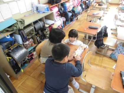 消しゴムを筆箱の上にのせて、トントン相撲をしていました。