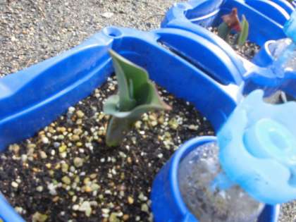 植木鉢には、以前植えたチューリップの球根が・・・。