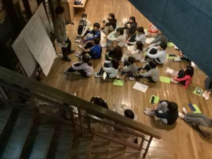 落ち着いて個人やグループ、学年全体での行動をふりかえっています。