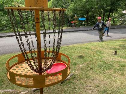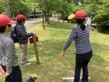子どもたちにとって、ディスクを真っすぐに投げるのは難しいのですが、