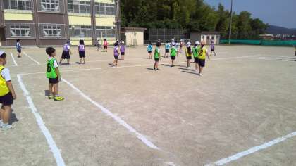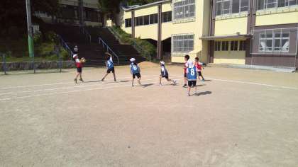 体育の学習でエンドボールをしました。はじめての活動だったので,ルールを確認し,実際に試合をしました。友だちに「こう動いて」と声をかけながら活動していました。
