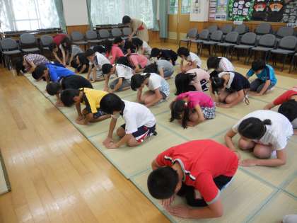 本校部活動「茶道教室」にてご指導いただいている西野宗顕先生を講師としてお迎えし,「真・行・草」の3種類のお辞儀や座禅をご指導いただきました。