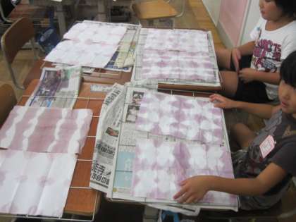 「どんな色が出るかな?」「どんな模様になるんだろう?」と,子ども達は興味津々。