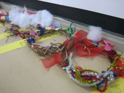 生活の時間,アサガオのつるで作ったリースが完成しました。