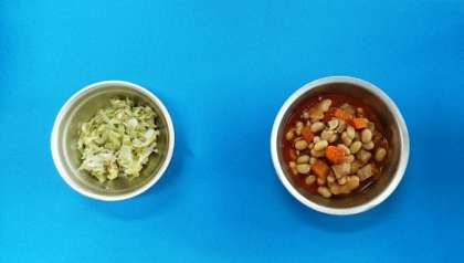 味つけコッペパン・牛乳・ポークビーンズ・ツナとキャベツのソティ・甘夏みかん