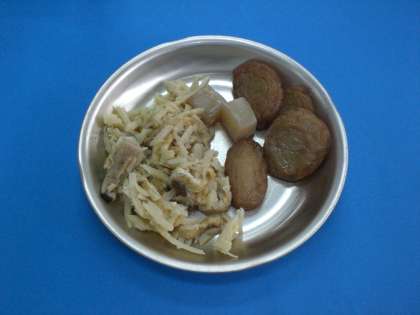 たけのこごはん(具) 平天の煮つけ    すまし汁
