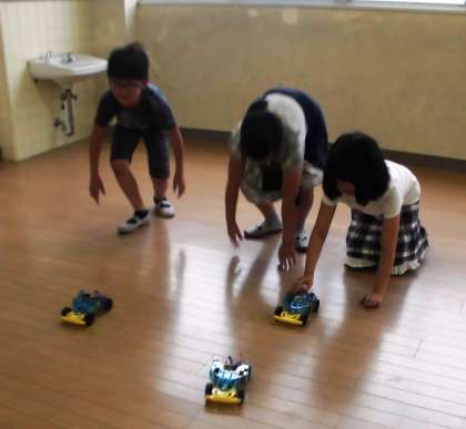 電池のはたらきの単元では,直列つなぎと並列つなぎの回路を学習しました。つなぎ方によって電流の大きさがどのように変わるのかなど,検流計を使って調べたり,光電池を使ってモーターのまわり方を調べたり,みんな興味深く実験に取り組んでいました。最後には回路を完成させ,モーターを使ったおもちゃの車で学習のまとめをしました。速く走ると大きな歓声が上がっていました。