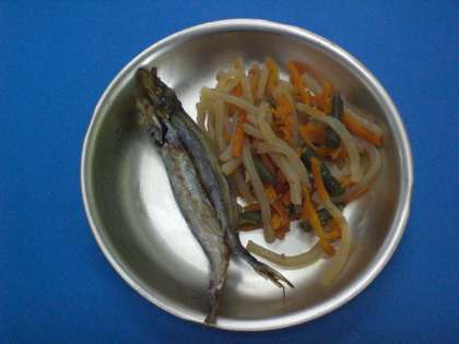 ししゃものからあげ 野菜のきんぴら キャベツのすまし汁