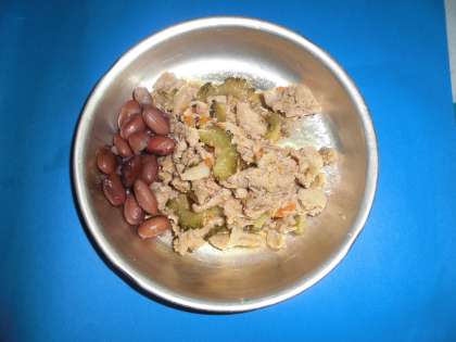 玄米ごはん・牛乳・豚肉とゴーヤのしょうがいため・金時豆の甘煮・かきたま汁
