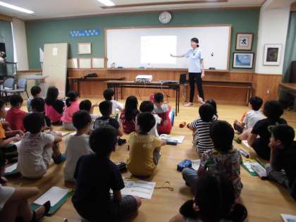 サントリーから特別講師の方に来てもらい、水を育む=「水育」の授業をしていただきました。みんなの使っている水は地球を循環していることを知り、森のはたらきについて実験を通して学びました。「水をたくわえてくれる」「水をきれいにしてくれる」森を大切にしていきたいですね。