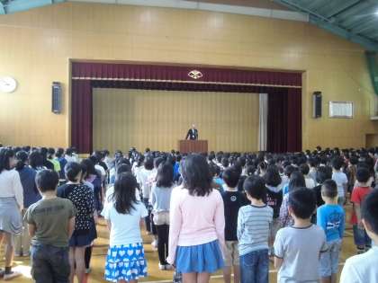 9日(金)1時間目に前期終業式を行いました。校歌斉唱の後,校長先生のお話を聞きました。「元気にあいさつする子」「しっかり勉強する子」「人を大切にする子」「きまりを守る子」の4つの目標や4月に新しい学年になり,自分ががんばろうと決めたことはどれくらい達成できたか振り返りましょう。