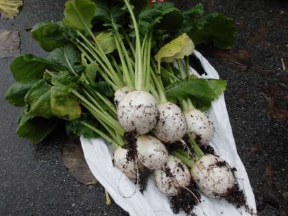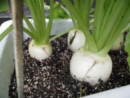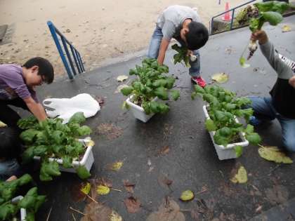 約2か月にわたり育ててきたかぶが大きくなり,収穫をしました。一本一本ていねいに引き抜きます。自分で一生懸命世話をしてきた分,食べることに大きな喜びを感じることと思います。煮物にしようか,漬物にしようかなどと,みんな嬉しそうに話していました。収穫したかぶは調理をし,旬の味をたのしみたいと思います。