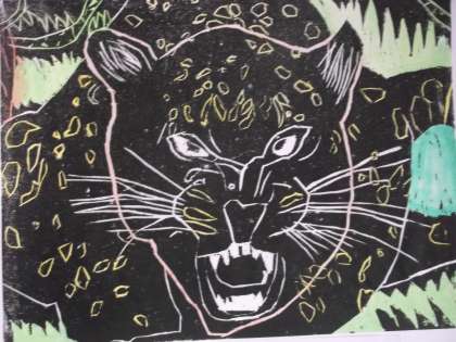 木版のテーマは,動物です。森や草原・身近な動物,海に生きる生物です。黒白の版画と,そのあと絵の具で着色する2種類の版画を制作しました。どちらも素敵な作品に仕上がりました。