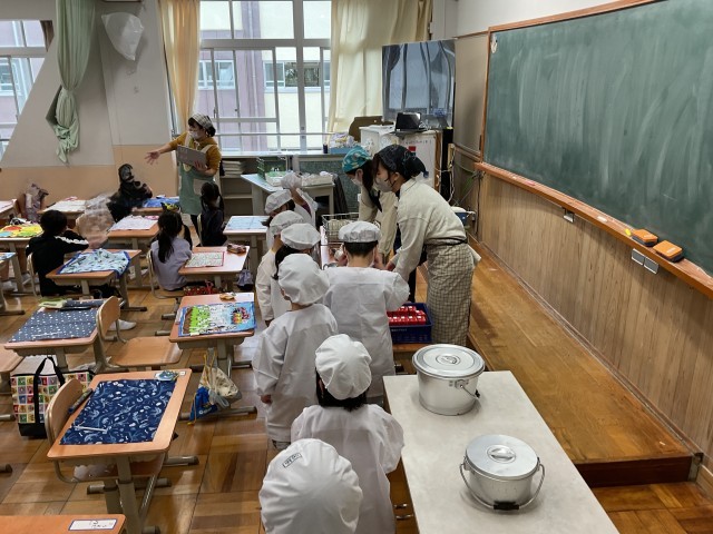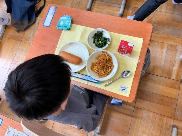教室にもどって配膳をやりおえて、ようやく「いただきます」となりました。