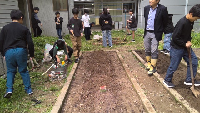 今週は畑を耕したり、雑草を抜いたりして、これから枝豆などの植物を育てていく予定です。