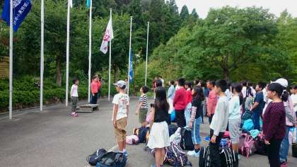 本館前広場にて入所式