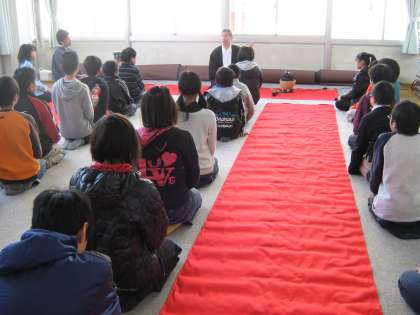 2月8日に,6年生が茶道体験を行いました。講師の方から茶道についてのお話を聞いた後,お菓子のいただき方,お茶の点て方・いただき方などをご指導していただきました。