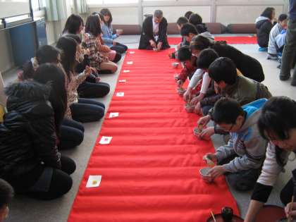 保護者の方がボランティアを申し出てくださり,お湯の用意,お茶碗洗い,子どもがお茶を点てる時の補助などをしてくださいました。お忙しい中,ありがとうございました。