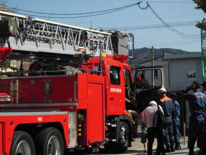 消防車の運転席に乗ったり