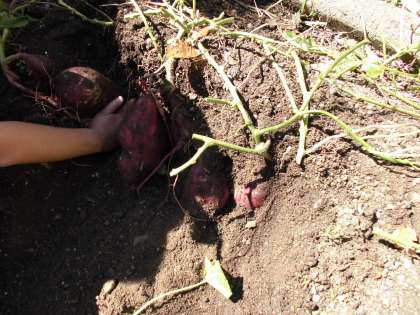 あおぞら学級で育てていたサツマイモを,収穫しました。サツマイモは,地域の方にお世話になりながら,4月から大切に育ててきました。