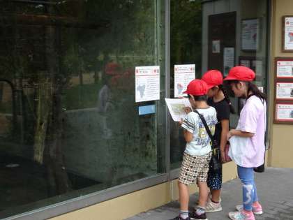 なんとかお天気ももって,京都市動物園に行ってきました。グループ毎にクイズラリーをしながら園内をまわりました。ひとりひとりがリーダーという気持ちで,みんなで協力しながらまわることができました。園内を歩き疲れた後に食べたお弁当は最高でした。みんな口いっぱいにほおばりながら満面の笑みでした。朝早くからお弁当のご準備をしていただき,ありがとうございました。