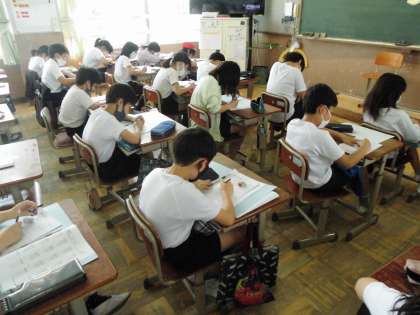 5分間,集中して計算問題に取り組んでいます。今は早さよりも正確さや丁寧さを心がけて取り組んでいます。