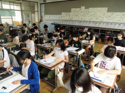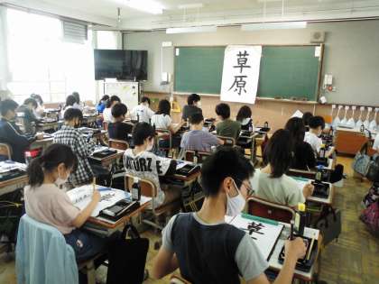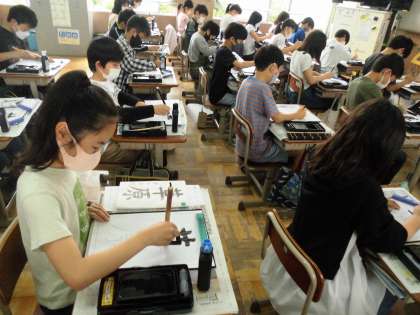 姿勢を正して,心を落ち着けて…文字の組み立て方やどの位置に書くと文字の形が整うかを考えながら練習しました。