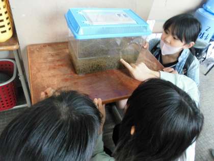 小さな命の塊!いつカエルになるのかな。どの子もみんな興味津々です。