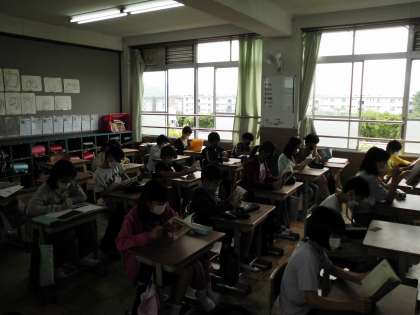 元気に登校してきました。1組も2組も,いつものように落ち着いて朝読書です。