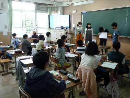 国語科の「聞いて考えを深めよう」の学習で