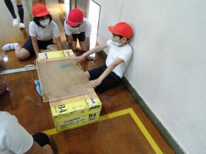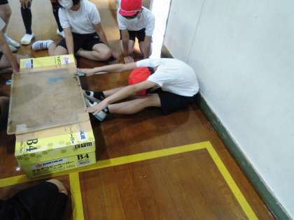 体育館で体力テストです。長座体前屈にチャレンジしました。柔らかい!すごい!みんな頑張っています。