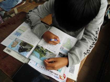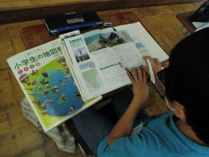 熱心に教科書を読み調べています。「あっ,少しでも高い土地に家を建てている。って書いてある!」「水屋って何?」など様々なつぶやきが聞こえてきました。ものすごい集中力です。