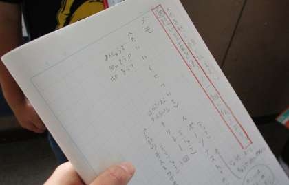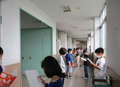 それぞれのクラスで聞いたことを隣のクラスの人に伝えました。そのときに,メモを短い言葉で書いたり,記号を使ったりするなどのくふうをしました。次はもっとこうしたいとふりかえりを書いている子が多かったです。