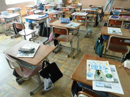 3時間目の学習の準備を机の上に整えてから遊びに出かけます。