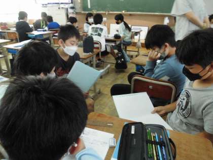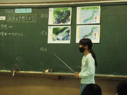 雲の動きの特徴を考えて天気を予想しました。理由も含めて友達同士で説明し合う姿が立派でした。