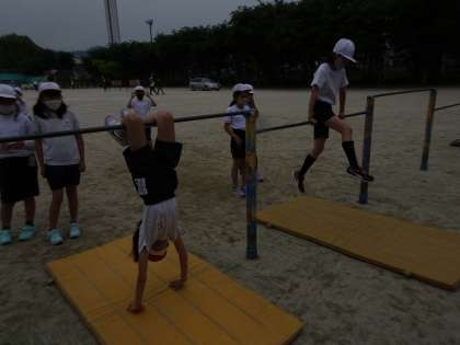 2年生の時からどのくらいできるようになっているかな?まずは現状を知るために,てつぼうに向かいました。「できなかった技ができた〜」とうれしそうな顔で話してくれました。練習あるのみ。来週も引き続き,てつぼうで,できる技を増やしていきたいと思います。