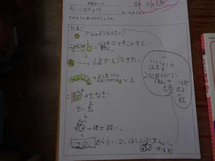 植物に続いて次は昆虫の育ち方の学習へ進んでいます。モンシロチョウって卵からどんな風に大きくなっていくのかな?みんなで予想をしました。これからみんなでお世話をして大事に育てていきたいと思います。
