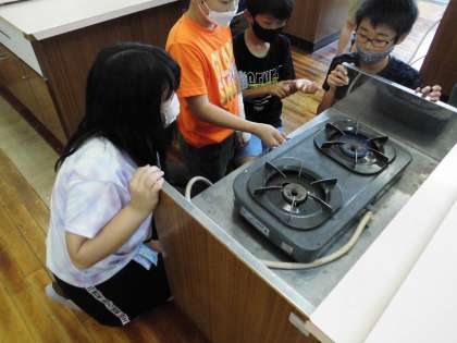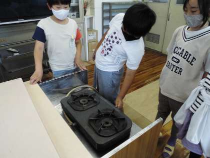 コンロに点火をする練習をしました。