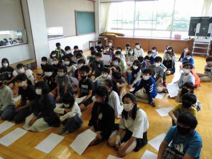 集会に参加するときは靴はきっちり整えます。チーム5年!ごっつええ感じ。