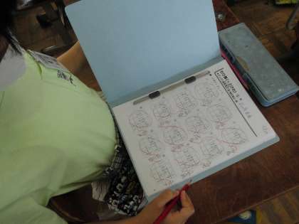 計算力アップを目指して取り組んでいるぐんぐんタイム!割り算のプリントに取り組んだ後,時間があったら確かめをしてみるのもいいよ。と声をかけたら,さっそく取り組んでいるひとを発見!ごっつええ感じ!
