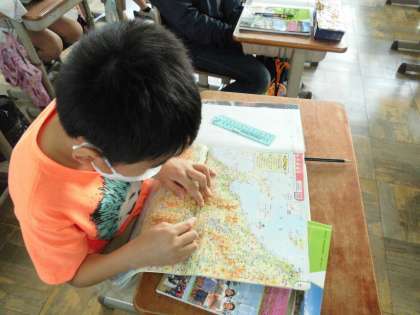 地図を使ってそれぞれの場所を確認し,同じ3月なのに場所によって様子が違うことにびっくりしていました。