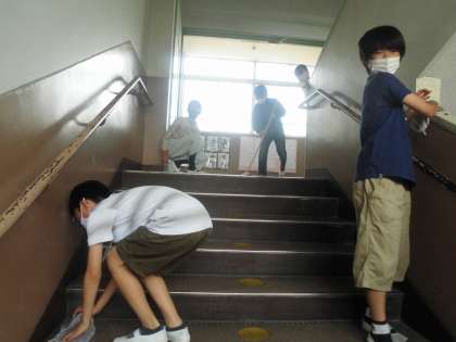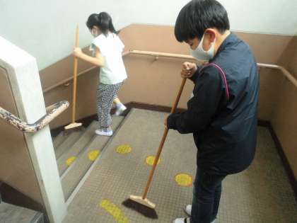 毎日の掃除を丁寧にしてくれているおかげで,滑らず安全な学校生活を送ることができています。黙々と学校を守っている姿が良いですね。