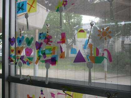 光のプレゼントという学習で,セロハンを使って素敵なうちわを作りました。光を通すととても綺麗でした。また,お家でも飾ってください。