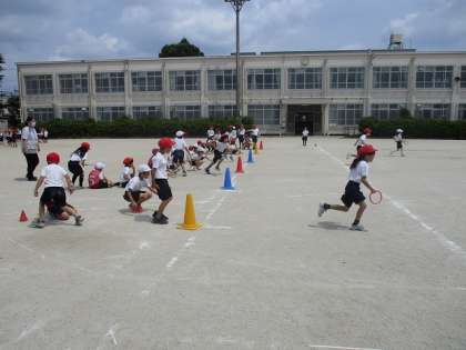 折り返しリレーのコースを考えて,自分たちで工夫して折り返しリレーあそびをしました。友達の作ったコースのよいところも見つけることができました。今後も折り返しリレーあそびのルールを守って楽しみたいですね。