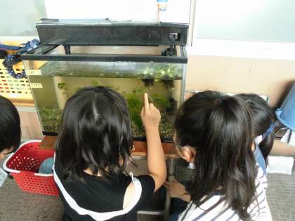 メダカの学習が始まります。みんなで水槽を観察しました。